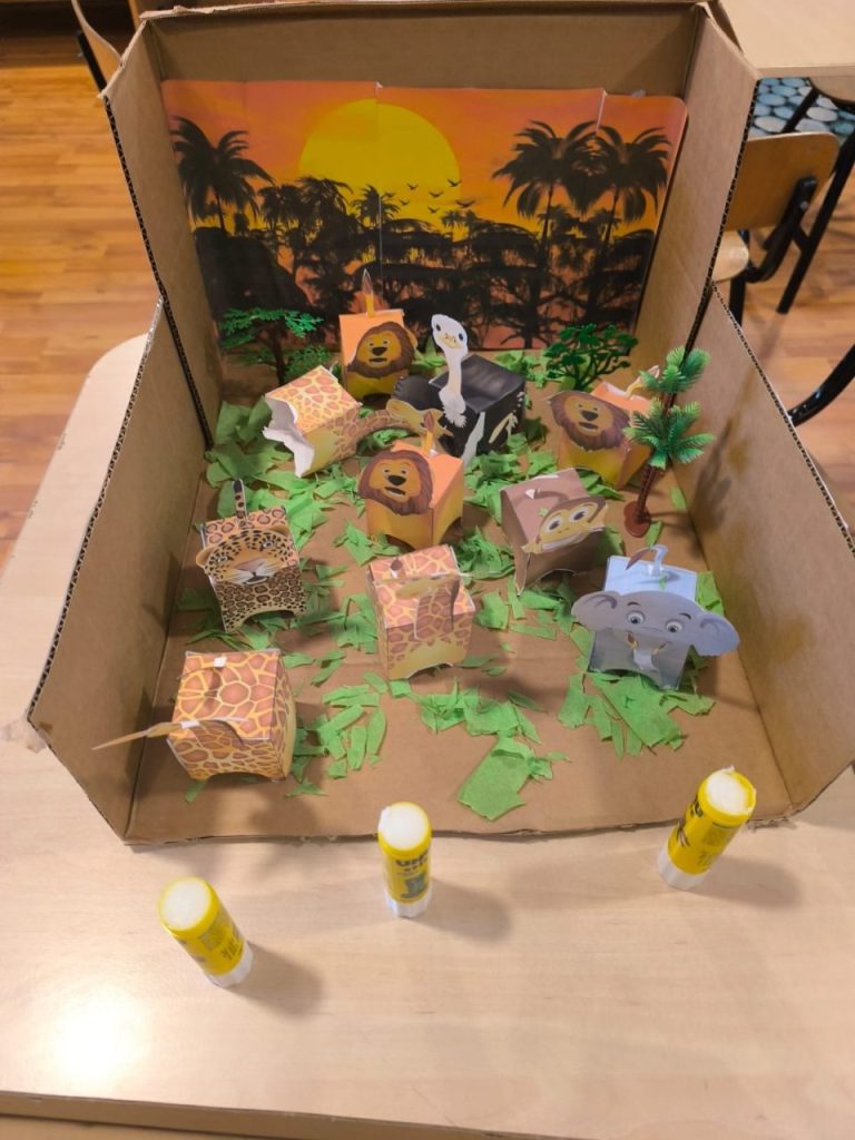 Domeniul Om și Societate: Activitate practică- asamblare și lipire șabloane/siluete animale din junglă