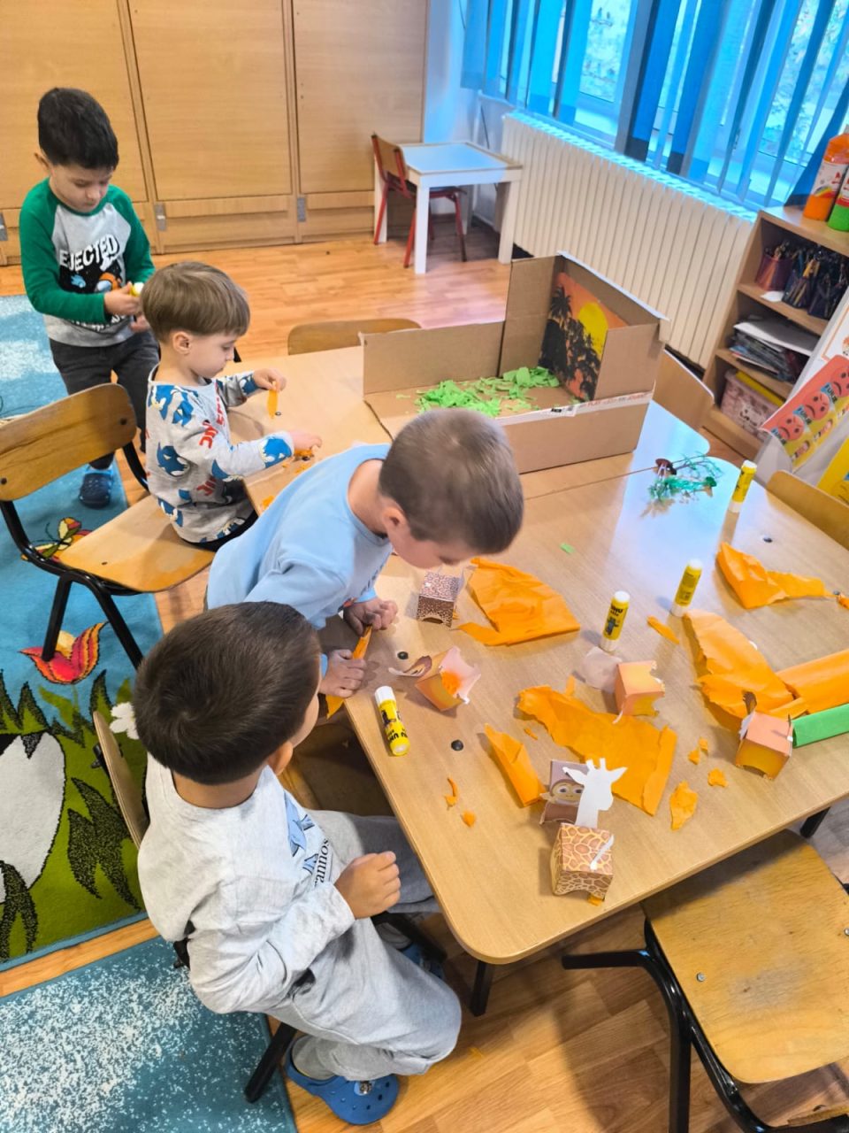 Domeniul Om și Societate: Activitate practică- asamblare și lipire șabloane/siluete animale din junglă